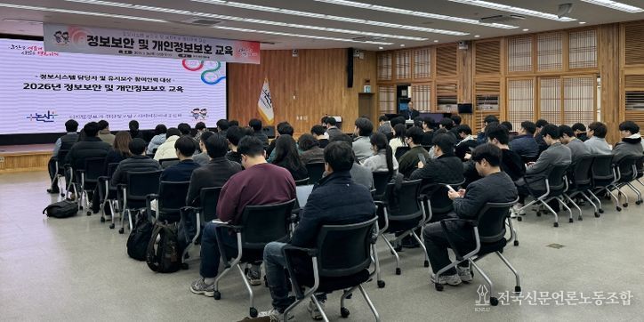 전국신문언론노동조합 강찬희 기자 | 논산시는 26일 시청 회의실에서 정보시스템 담당자와 유지보수 참여 인력 105명을 대상으로 ‘정보보안 및 개인정보보호 교육’을 실시했다.