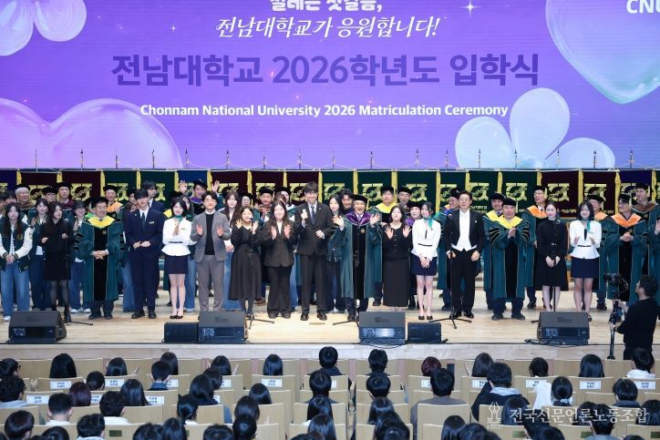 전국신문언론노동조합 강찬희 기자 | 전남대학교는 2월 27일 오후 2시 전남대학교 용봉캠퍼스 민주마루에서 '2026학년도 입학식'을 개최하고 총 6,367명의 신입생을 맞이했다.
