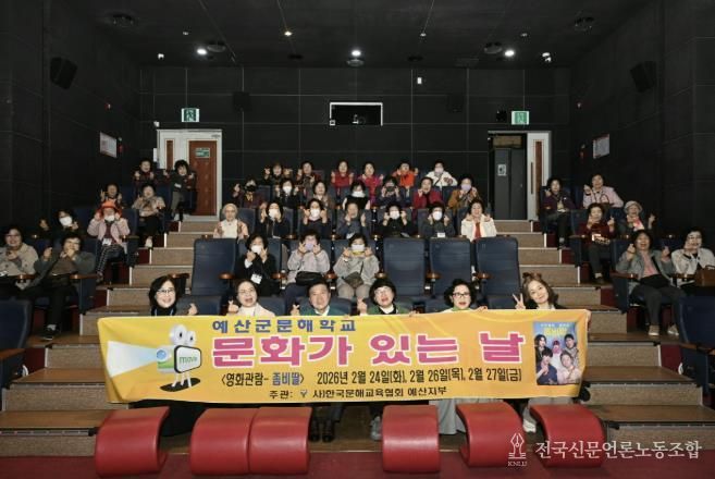전국신문언론노동조합 강찬희 기자 | 예산군은 찾아가는 문해교실의 일환으로 2월 24일과 26일, 27일 3일간 문해학습자 어르신 252명을 대상으로 예산시네마에서 영화 ‘좀비딸’을 관람하는 ‘문화가 있는 날’ 행사를 진행했다.