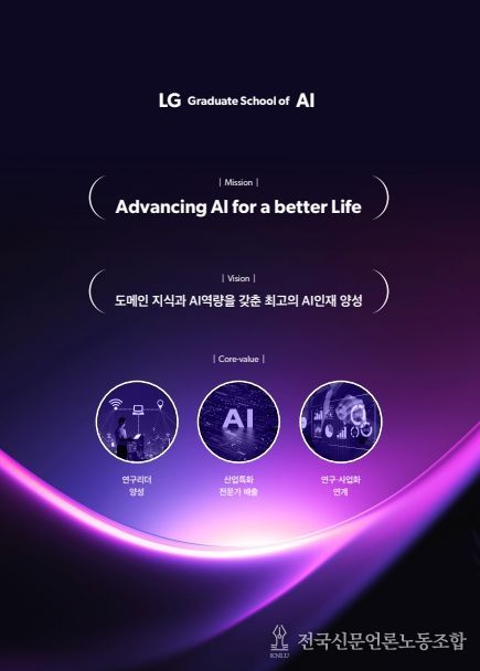 전국신문언론노동조합 강찬희 기자 | ㈜엘지(LG)경영개발원 에이아이(AI)연구원이 설치한 사내대학원인 ‘엘지(LG) 에이아이(AI) 대학원’이 3월 4일에 개원식을 열고, 본격적으로 석박사 학위과정 운영을 시작한다.