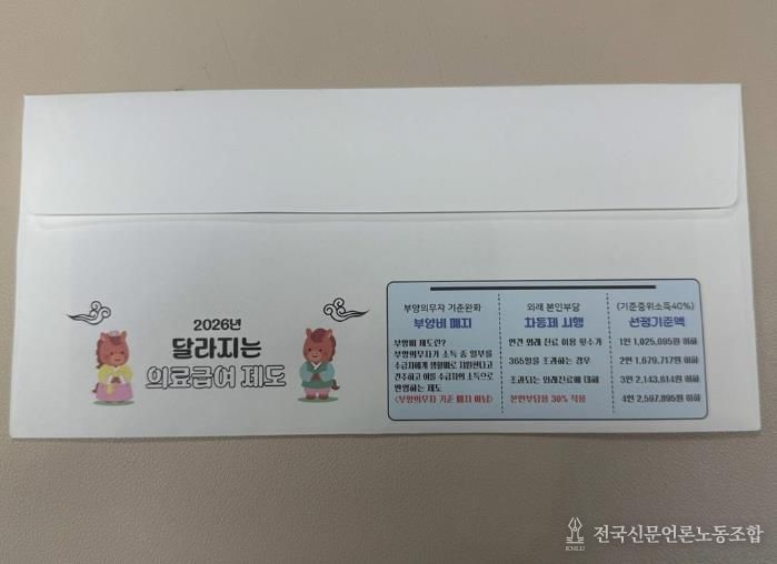전국신문언론노동조합 김성길 기자 | 의정부시는 2026년부터 달라지는 의료급여 제도의 핵심 내용을 시민들에게 신속하게 알리기 위해 주요 변경 사항을 담은 맞춤형 우편봉투를 제작했다고 5일 밝혔다.