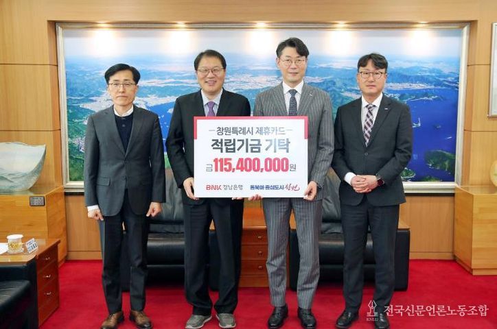 전국신문언론노동조합 강찬희 기자 | 창원특례시는 3월 5일 시청 접견실에서 BNK경남은행 관계자들이 참석한 가운데 제휴카드 적립기금 전달식을 개최했다.