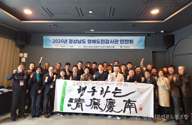 전국신문언론노동조합 강찬희 기자 | 경상남도는 5일 통영에서 ‘2026년 경상남도 명예도민감사관 연찬회’를 개최하고 도민과 함께하는 청렴경남 실천 의지를 다졌다.