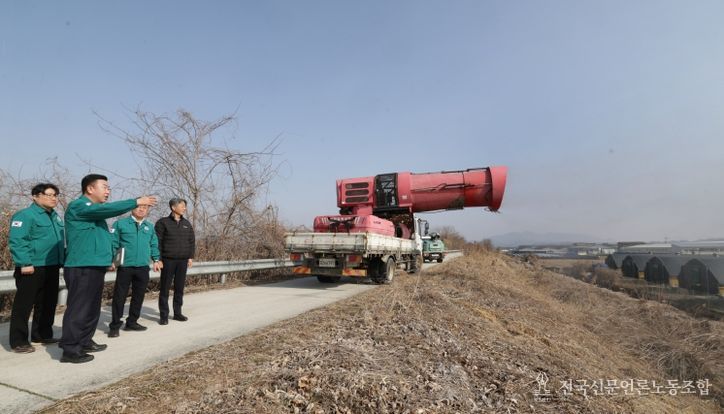 전국신문언론노동조합 김성길 기자 | 이범석 청주시장은 5일 청원구 북이면에 위치한 미호강 철새도래지를 방문해 가축전염병 차단 소독 현장을 점검했다.