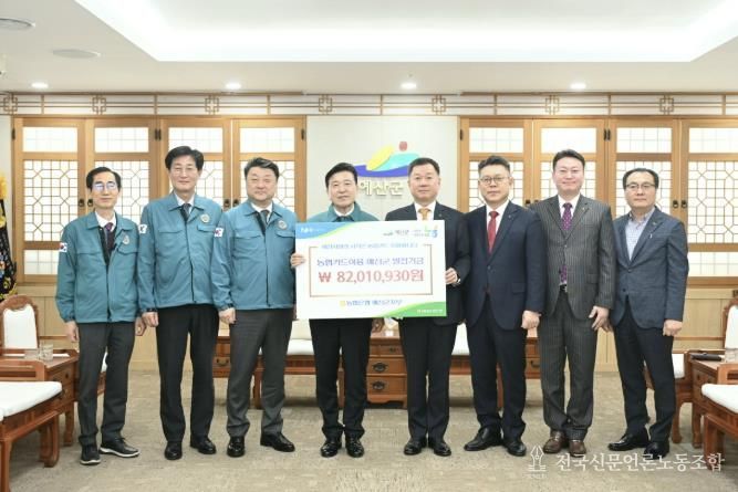 전국신문언론노동조합 강찬희 기자 | 예산군은 지난 5일 군청에서 NH농협은행 예산군지부와 함께 제휴카드 적립금 기탁식을 개최했다.