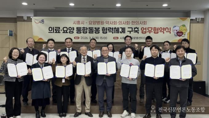 전국신문언론노동조합 김성길 기자 | 시흥시는 지난 3월 5일 통합돌봄 사업의 안정적 추진과 지역 의료·돌봄 연계 강화를 위해 관내 요양병원 11곳 및 보건의료단체와 시청 글로벌센터에서 업무협약을 맺었다.
