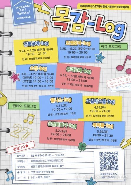 전국신문언론노동조합 김성길 기자 | 시흥시는 목감아트하우스27에서 운영하는 상반기 생활문화교육 ‘목감-로그(log)’ 참여자를 모집한다.