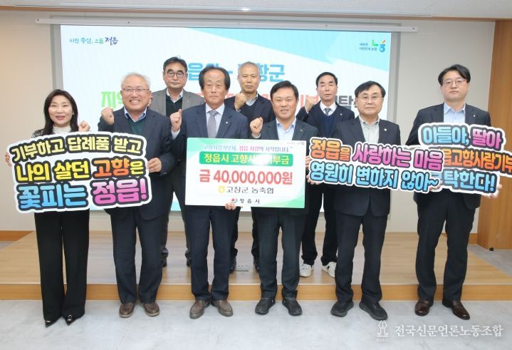 이학수 시장은 “지역 농축협 임직원 여러분의 자발적이고 꾸준한 참여가 고향사랑기부제의 원동력이 되고 있다”며 “정읍과 고창의 상생을 위해 선뜻 뜻을 모아주신 양 지역 농협 지부와 조합 관계자 여러분께 깊은 감사를 드린다”고 화답했다.