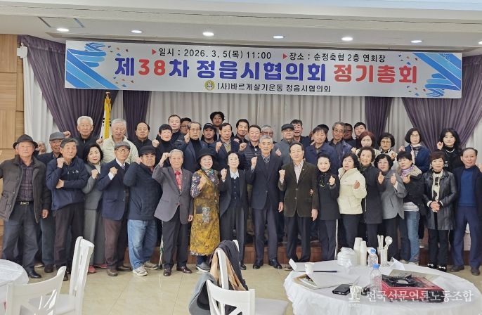 전국신문언론노동조합 강찬희 기자 | 바르게살기운동 정읍시협의회(회장 최창묵)가 지난 5일 순정축협 한우명품관에서 임원과 지역별 위원장 등 60여 명이 참석한 가운데 제38차 정기총회를 개최했다.
