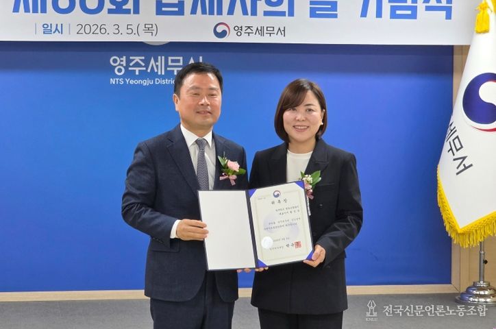 전국신문언론노동조합 강찬희 기자 | 예천군은 농부창고(대표 황영숙)가 지난 5일 영주세무서에서 열린 '제60회 납세자의 날' 기념식에서 일일 명예납세자보호담당관으로 위촉됐다고 밝혔다.