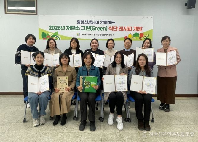 전국신문언론노동조합 김성길 기자 | (재)안양·군포·의왕·과천공동급식지원센터는 지난 5일 기후위기 대응과 지속 가능한 식문화 조성을 위한 ‘2026년 저탄소 그린 식단 레시피 개발 4기 TF팀 위촉식’을 개최했다고 6일 밝혔다.