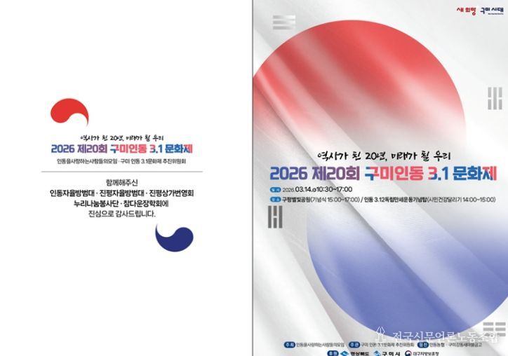 전국신문언론노동조합 강찬희 기자 | 구미시는 '인동을 사랑하는 사람들의 모임'(회장 장진호) 주최, 주관으로 '제20회 구미인동 3.1문화제'를 개최한다.