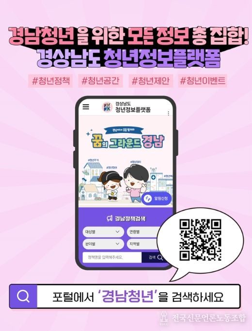 전국신문언론노동조합 강찬희 기자 | 경상남도는 도내 청년 창업가들의 자유로운 본인 홍보를 위해 경남청년정보플랫폼에 ‘청년 PR(홍보)’ 메뉴를 신설한다고 밝혔다.