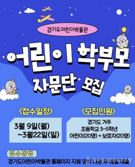 전국신문언론노동조합 김성길 기자 | 경기문화재단 경기도어린이박물관이 2026년 개관 15주년을 맞아 ‘제17기 어린이자문단’을 전면 확대 운영하고, 신규 ‘학부모자문단’을 창설한다고 밝혔다. 이번 자문단 운영을 통해 어린이와 보호자를 박물관 운영의 핵심 파트너로 모시고, 이용자 의견이 실제 정책과 운영에 반영되는 ‘함께 성장하는 포용적 박물관’의 가치를 강화 할 예정이다.