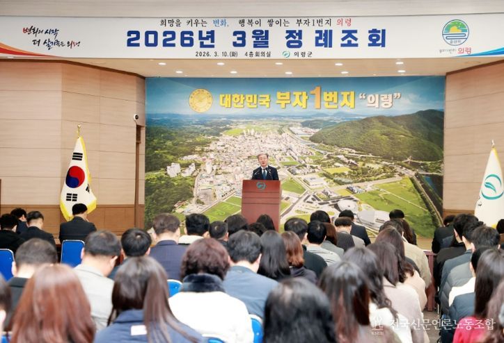 전국신문언론노동조합 강찬희 기자 | 오태완 의령군수가 정례조회에서 군민의 걱정을 덜어주는 ‘민생안심 3책(三責)’을 강조하며 군정 방향을 공유했다.