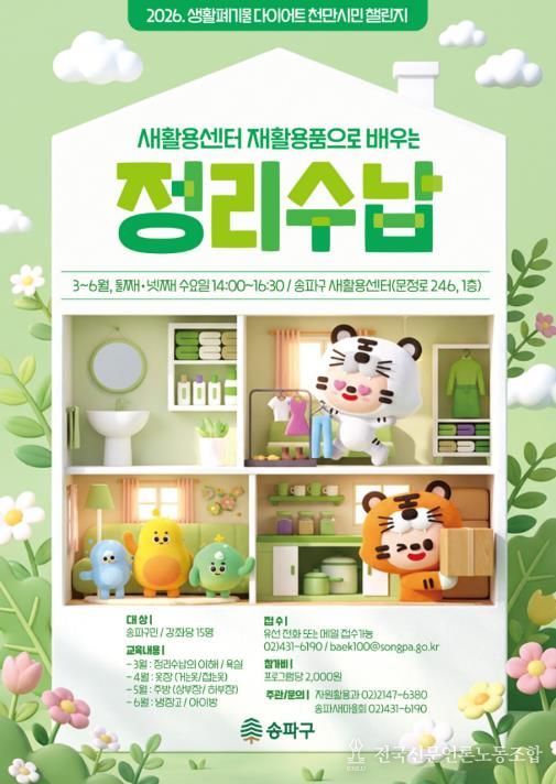 전국신문언론노동조합 강찬희 기자 | 서울 송파구가 재활용품을 활용해 생활 쓰레기를 줄이고 집 안도 깔끔하게 정리하는 새로운 강좌를 선보인다.