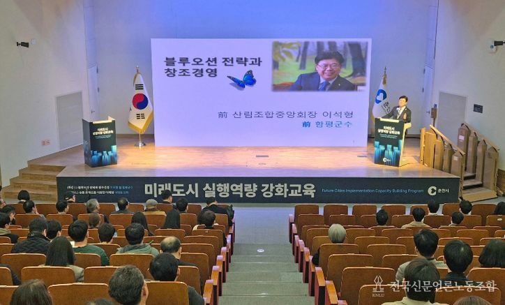 전국신문언론노동조합 강찬희 기자 | 춘천시는 10일 시청에서 직원들을 대상으로 ‘미래도시 실행역량 강화교육’ 특강을 개최했다.