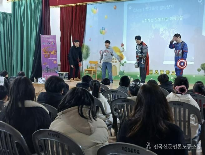 전국신문언론노동조합 강찬희 기자 | 진안군 청소년상담복지센터는 지난 10일 성수면 외궁초등학교에서 백운·마령·외궁초등학교 학생 90여 명을 대상으로 ‘논술개그로 생각하는 학교폭력 예방교육’ 공연을 진행했다.