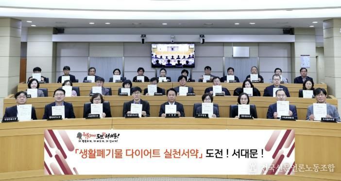 전국신문언론노동조합 강찬희 기자 | 서대문구가 이달 12일 구청 대회의실에서 간부 직원들이 참여한 가운데 ‘생활폐기물 다이어트 실천 서약 챌린지’를 진행했다.