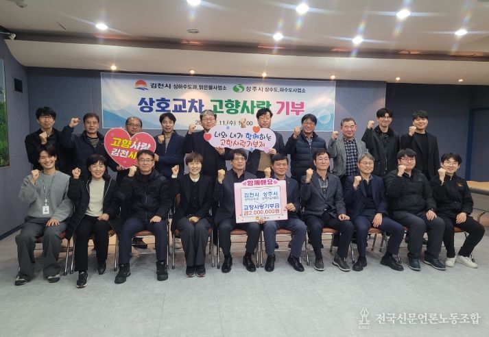 전국신문언론노동조합 강찬희 기자 | 김천시 상하수도과와 맑은물사업소는 3월 11일 오후 2시, 상주시 상․하수도사업소와 ‘고향사랑 상호기부’ 및 ‘상하수도 시설 운영 협력 방문’을 진행했다고 밝혔다.