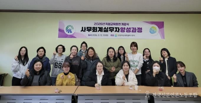 전국신문언론노동조합 강찬희 기자 | 홍성군은 홍성여성새로일하기센터가 지난 12일 교육생과 관계자 등 20여 명이 참석한 가운데 2026년 직업교육훈련 ‘사무회계실무자양성과정’에 대하여 개강식을 진행했다고 밝혔다.
