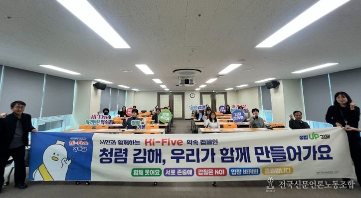 전국신문언론노동조합 강찬희 기자 | 김해시는 12일 오후 2시 제2청사 중회의실에서 20개 문화예술단체와 함께 청렴한 김해 구현을 위한 ‘슬기로운 청렴생활 Hi-Five 약속 캠페인’을 실시했다.
