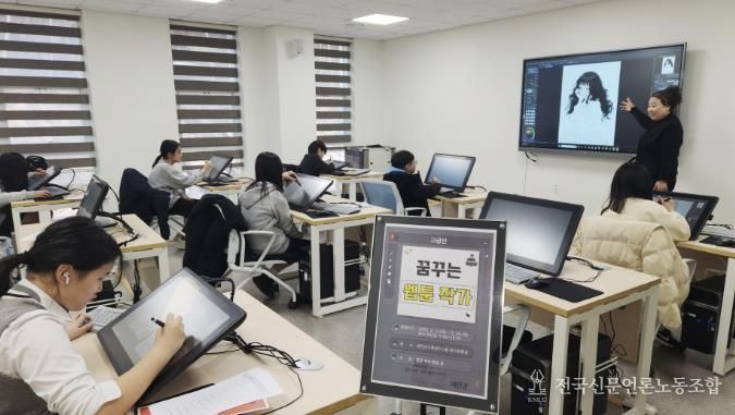 수강생들은 목요일 고급반과 금요일 초급반으로 나뉘어 매주 센터 3층 창의융합실에 모여 전문 강사의 지도 아래 다양한 그래픽 프로그램을 익히고 개성 있는 웹툰을 제작하는 창작 활동에 참여하게 된다.