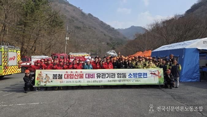 전국신문언론노동조합 강찬희 기자 | 보령시는 봄철 대형산불 조심 기간을 맞아 유관기관 간의 유기적인 공조 체계를 점검하고 실전 대응 능력을 강화하고자 지난 12일 성주면 심원동 주차장에서 대형산불 합동 소방훈련을 실시했다.