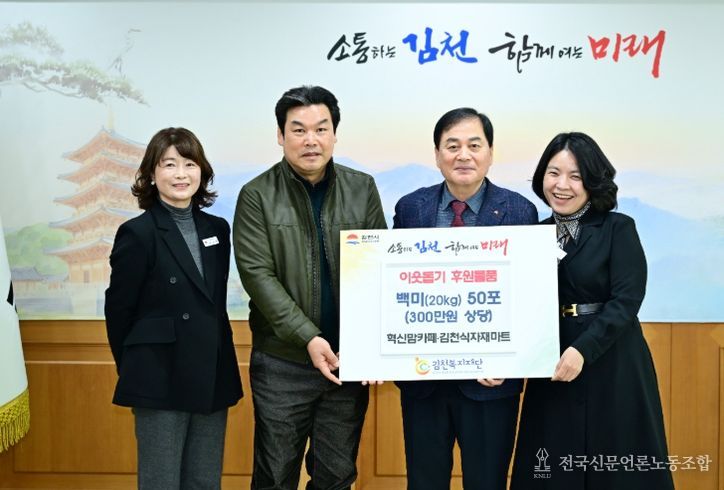 전국신문언론노동조합 강찬희 기자 | 김천식자재마트(대표 강도림)가 지역 사회와의 상생을 위해 3월 16일 혁신맘카페(대표 엄소현)에 쌀 50포(10kg)를 기탁하며 온정을 나눴다.