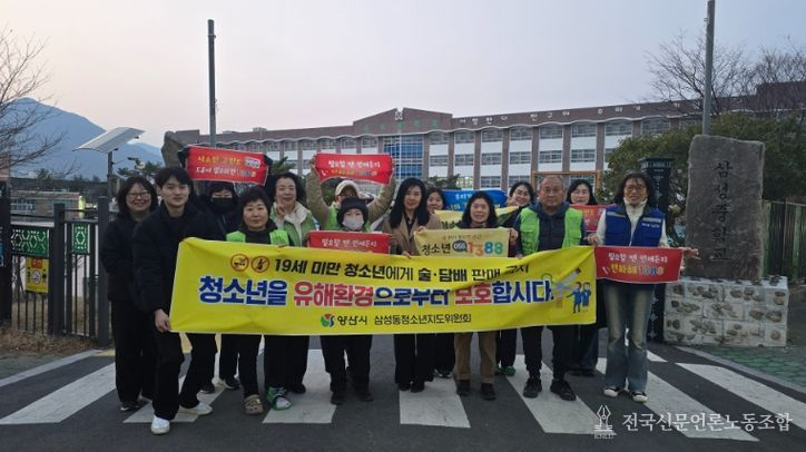 전국신문언론노동조합 강찬희 기자 | 양산시청소년상담복지센터는 지난 11일 삼성동행정복지센터 및 청소년지도위원들과 함께 삼성동 일대에서 청소년 유해환경 점검과 청소년 보호 캠페인을 실시했다.