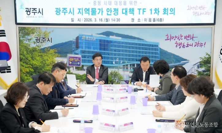 전국신문언론노동조합 강찬희 기자 | 광주시는 16일 시청 이음홀에서 방세환 시장 주관으로 ‘지역 물가 안정 대책 전담팀(TF)’ 회의를 개최하고 중동 사태에 따른 국제 유가 급등이 지역경제에 미치는 영향을 분석하는 한편 민생경제 안정을 위한 소상공인·기업 지원 대책을 논의했다.