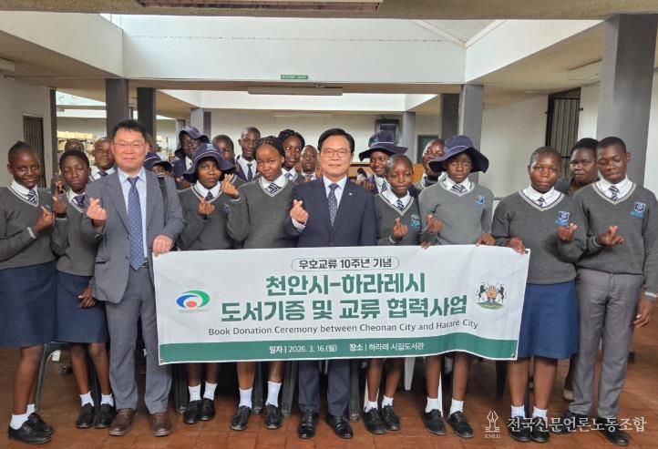 전국신문언론노동조합 강찬희 기자 | 짐바브웨를 방문 중인 천안시 대표단이 지난 16일(현지시각) 하라레 시청에서 우호교류 10주년 기념행사에 참석해 양 도시 간 협력 관계를 공고히 했다.