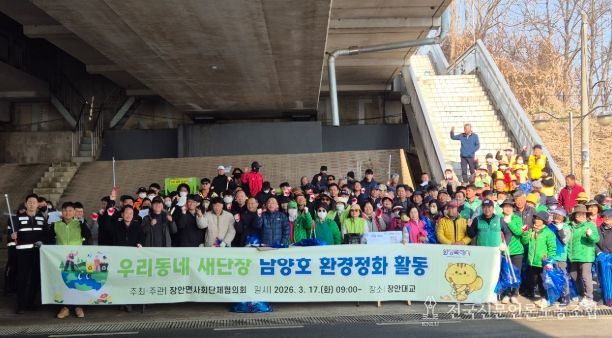 남양호는 지역 주민들의 대표적인 휴식 공간이자 농업지역과 인접한 생활권 수변 지역으로, 계절별 방문객 증가와 영농활동 등으로 지속적인 환경관리가 필요한 곳이다. 이에 장안면은 지역사회가 함께 참여하는 환경정화 활동을 통해 남양호 일원의 수질오염을 예방하고 쾌적한 생활환경을 조성하고자 이번 행사를 마련했다.