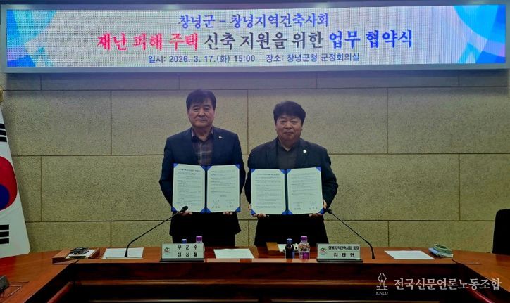전국신문언론노동조합 강찬희 기자 | 창녕군과 창녕지역건축사회(회장 김태헌)는 지난 17일 군청 군정회의실에서 ‘재난 피해 주택 신축 지원 업무협약’을 체결했다고 밝혔다.