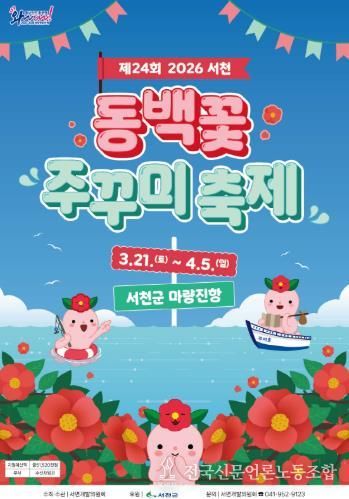 전국신문언론노동조합 강찬희 기자 | 서천군의 대표 봄 축제인 ‘제24회 서천 동백꽃 주꾸미 축제’가 오는 3월 21일부터 4월 5일까지 16일간 서면 마량진항 일원에서 열린다.