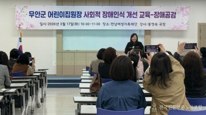 전국신문언론노동조합 강찬희 기자 | 무안군어린이집연합회(회장 신경옥)는 지난 17일 관내 어린이집 원장을 대상으로 장애인 인식개선 교육과 보육 현안 공유를 위한 회의를 개최했다.