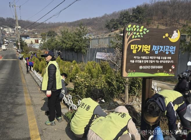 이번 활동에는 교문1동 주민자치위원회, 통장협의회, 새마을단체, 바르게살기위원회, 적십자봉사회, 지역사회보장협의체 등 기간단체 회원을 비롯해 경로당 회원, 원불교 신도, 딸기원 시립어린이집, 동 직원 등 약 120명이 참여했다. 참여자들은 펜지, 비올라, 마가렛, 데이지 등 봄꽃 5,000본을 정성껏 심으며 마을 곳곳에 봄의 활기를 더했다.