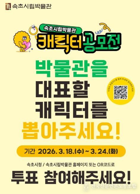 전국신문언론노동조합 강찬희 기자 | 속초시립박물관은 박물관을 대표할 캐릭터 선정을 위해 실시한 공모전의 선호도 조사를 진행한다.
