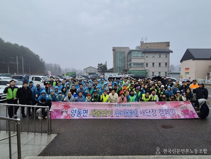 전국신문언론노동조합 김성길 기자 | 양평군 양동면은 18일 새봄을 맞아 쾌적하고 깨끗한 지역 환경 조성을 위한 ‘새봄맞이 우리동네 새단장 캠페인’을 성황리에 마쳤다고 밝혔다.