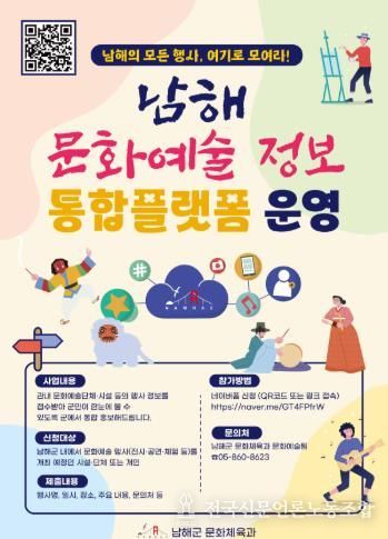 전국신문언론노동조합 강찬희 기자 | 남해군은 관내 문화예술 행사 정보를 한곳에서 확인할 수 있는 ‘남해 문화예술 정보 통합플랫폼’을 구축하고 본격 운영한다고 밝혔다.