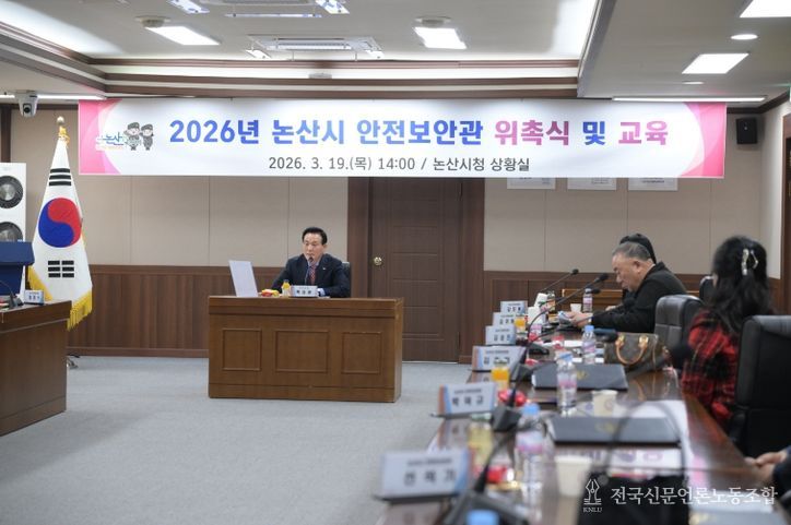 전국신문언론노동조합 강찬희 기자 | 논산시는 지난 19일 시청 상황실에서 지역사회 안전문화 확산을 위한 ‘2026년 안전보안관 위촉장 수여식 및 직무교육’을 개최했다.