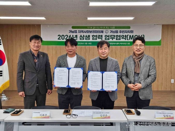 양 기관은 그동안 가남읍 내 복지 사각지대 발굴과 주민 주도의 마을 복지사업 추진에 있어 긴밀하게 협력해 왔다. 이번 협약은 이러한 협조체계를 공식화하고 명문화함으로써, 보다 체계적이고 지속 가능한 마을 복지 기반을 구축하고자 마련됐다.
