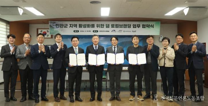 전국신문언론노동조합 강찬희 기자 | 진안군은 지난 19일 진안군청에서 댐 주변 지역의 자생적 성장 동력을 확보하고 지역 가치를 높이기 위해 한국수자원공사(K-water), 동아일보, 플랫폼 기업 퓨잇과 함께 댐 로컬브랜딩 연계 트레저헌터 in 진안에 대한 ‘업무협약’을 체결했다.