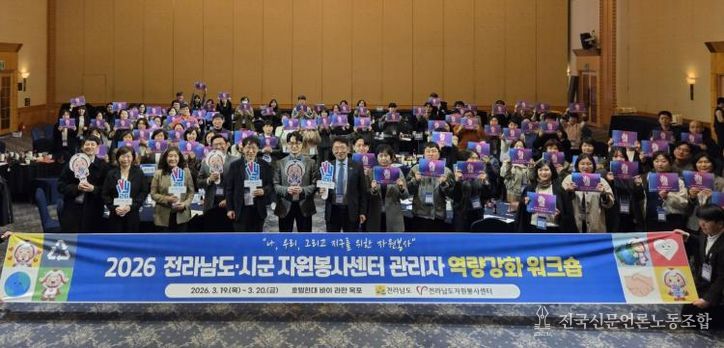 전국신문언론노동조합 강찬희 기자 | 전라남도는 자원봉사센터 관리자의 전문성 향상과 도·시군 간 협력 강화를 위해 2026년 ‘도·시군 자원봉사센터 관리자 역량강화 워크숍’을 20일까지 이틀간 영암 호텔현대 바이 라한에서 개최했다고 밝혔다.