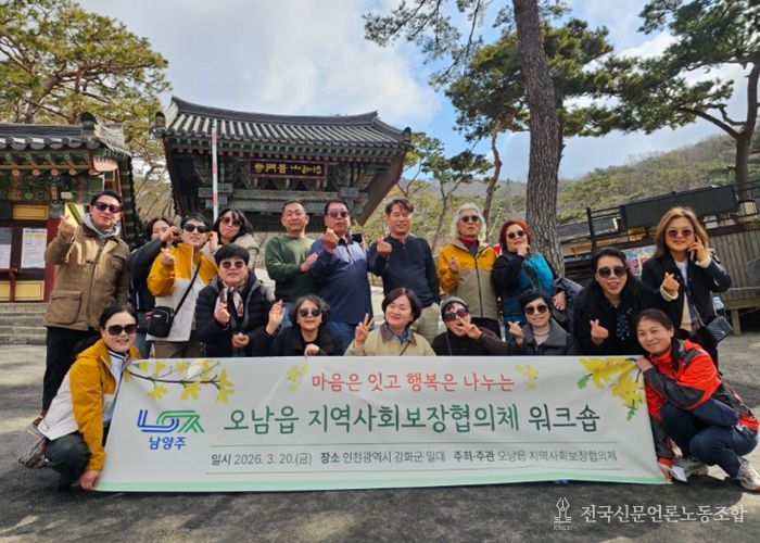 전국신문언론노동조합 김성길 기자 | 남양주시는 20일 강화군 일대에서 오남읍 지역사회보장협의체가 ‘2026년 오남읍 지역사회보장협의체 워크숍’을 개최했다고 밝혔다.