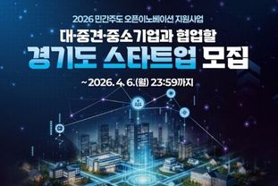 전국신문언론노동조합 강찬희 기자 | 경기도와 (재)경기창조경제혁신센터(이하 경기창경센터)는 도내 유망 스타트업의 혁신 성장을 돕고 대·중견기업과의 상생 협력을 도모하기 위해 ‘2026년 민간주도 오픈이노베이션 지원 사업’에 참여할 스타트업을 모집한다.