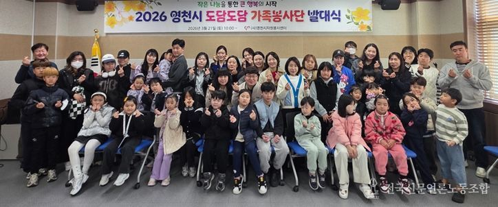 전국신문언론노동조합 강찬희 기자 | 영천시자원봉사센터는 지난 21일 자원봉사센터 1층 교육실에서 19가족 50여 명이 참석한 가운데 ‘2026년 도담도담 가족봉사단 발대식’을 열었다.