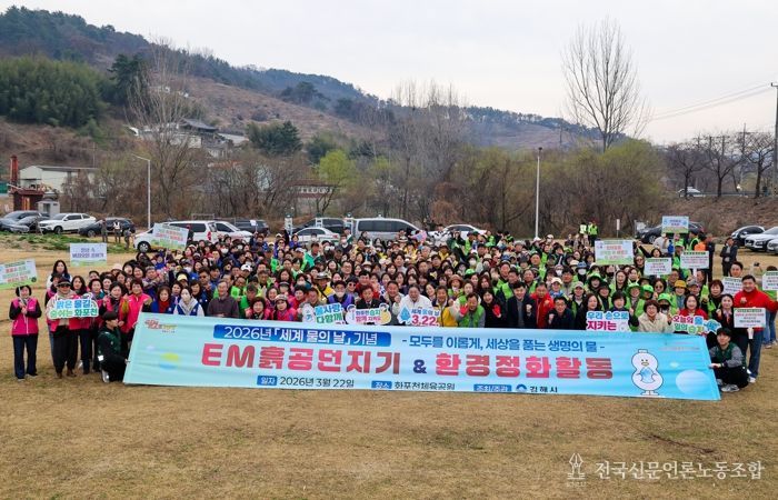 전국신문언론노동조합 강찬희 기자 | 김해시는 제34회 세계 물의 날인 지난 22일 화포천 체육공원 일원에서 수질 정화, 생태계 복원을 위한 ‘EM 흙공 던지기와 환경정화 활동’ 행사를 개최했다고 23일 밝혔다.