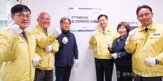전국신문언론노동조합 강찬희 기자 | 전북특별자치도는 23일 본격적인 농번기를 앞두고 농촌 인력 수급의 체계적 관리와 적기 지원 강화를 위한 ‘농촌인력지원 상황실’ 현판식을 개최했다.
