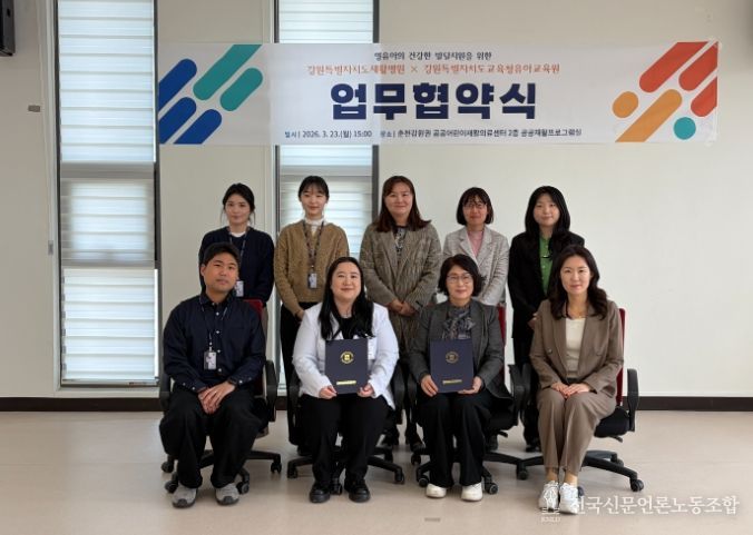 전국신문언론노동조합 강찬희 기자 | 강원특별자치도교육청유아교육원은 강원특별자치도재활병원과 3월 23일 15시 강원특별자치도재활병원 2층 프로그램실에서 영유아를 대상으로 상담 및 치료지원을 위한 업무협약을 체결했다.